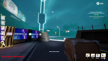 Disclaimer: the game is nearly impossible without some sort of movement ability or powerup. We strongly recommend you purchase the crouch slide ability from the vending machine before beginning your first run. As an aside, if you jump out of the crouch slide you gain a super jump.